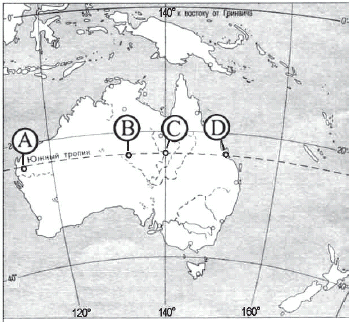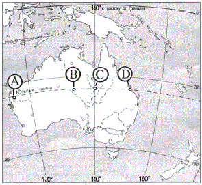 Вопрос id:415706 Тема/шкала: 32.Земля как планета, современный облик планеты Определите, в каком из пунктов, обозначенных буквами на карте Австралии, 23 сентября солнце будет находиться ниже всего над горизонтом в 4 часа утра по солнечному времени Гринвичского меридиана. Запишите обоснование Вашего ответа.