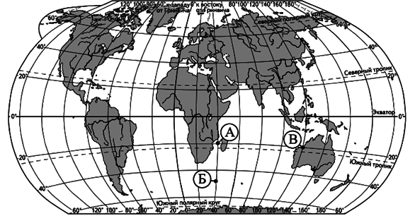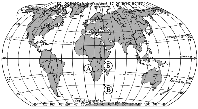 Вопрос id:415726 Тема/шкала: 32.Земля как планета, современный облик планеты Определите, в какой из точек, обозначенных буквами на карте мира, 1 мая Солнце будет находиться выше всего над горизонтом в 9 часов по солнечному времени Гринвичского меридиана. Запишите обоснование Вашего ответа. Вопрос id:415727 Тема/шкала: 32.Земля как планета, современный облик планеты Определите, в каком из пунктов, обозначенных буквами на карте России, 1 мая Солнце раньше (по времени Гринвичского меридиана) поднимется над горизонтом. Запишите обоснование Вашего ответа.