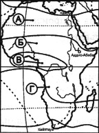 ?) средиземноморский ?) муссонный ?) с равномерным увлажнением ?) континентальный Вопрос id:413284 Тема/шкала: 05-Географические особенности России-Климат, климатические пояса России. В какой из обозначенных на карте Африки точек выпадает наибольшее среднегодовое количество осадков?