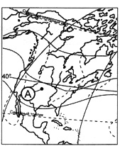?) А ?) В ?) Б ?) Г Вопрос id:413281 Тема/шкала: 05-Географические особенности России-Климат, климатические пояса России. Какие воздушные массы действуют в течение года на территории, обозначенной на карте Северной Америки буквой А?