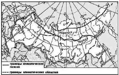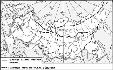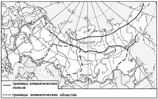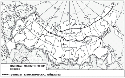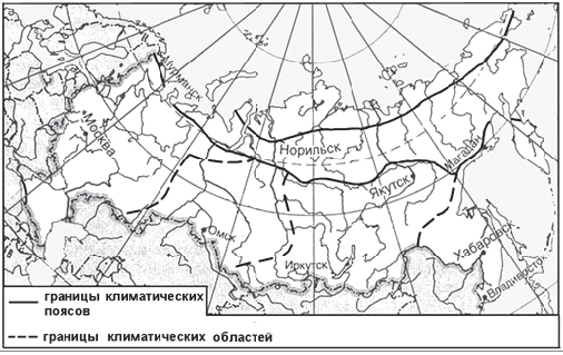 ?) Магадан ?) Москва ?) Иркутск ?) Омск Вопрос id:413296 Тема/шкала: 05-Географические особенности России-Климат, климатические пояса России. Какой из обозначенных на карте городов расположен в области резко континентального климата умеренного климатического пояса?