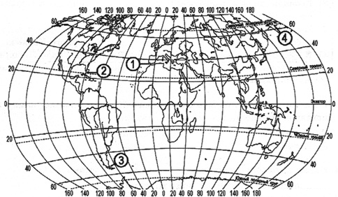 ?) Северном тропике ?) Южном тропике ?) экваторе ?) Северном полярном круге Вопрос id:413460 Тема/шкала: 06.Форма, размеры, движение Земли На какой из перечисленных параллелей 22 декабря продолжительность светового дня наибольшая?