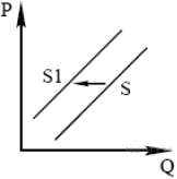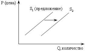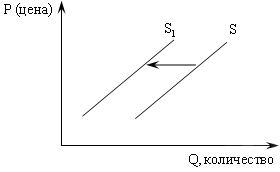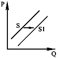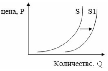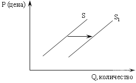 Что из приведённого ниже могло вызвать сдвиг кривой предложения из положения S в положение S1? (На графике Р — цена товара, Q — количество товара.)
