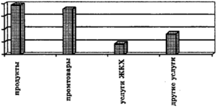 ?) эффективное использование ресурсов ?) открытие новых предприятий ?) низкая безработица ?) банкротство предприятий Вопрос id:416581 Тема/шкала: B7-Экономика: задания на анализ графической информации-Графики и диаграммы Рассмотрите диаграмму «Расходы семейного бюджета в Российской Федерации в 2008 году (в %)».