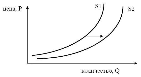 (Р — цена товара, Q — объём предложения). Это перемещение может быть связано прежде всего с (со)