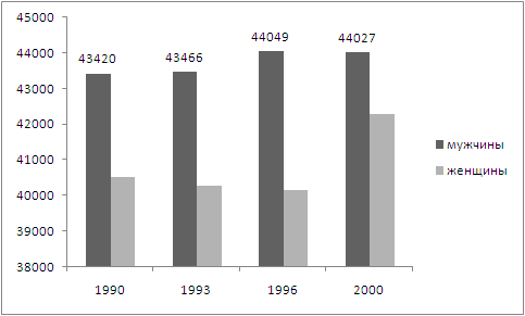 ?) Все возрастные категории опрошенных считают основной причиной успешной карьеры везение. ?) Число респондентов, считающих основной причиной успешной карьеры упорную работу, с возрастом увеличивается. ?) Подавляющее большинство отвечавших молодого возраста связывает успешную карьеру с упорной работой. ?) Респонденты старшего возраста одинаково важными причинами считают везение и упорную работу. Вопрос id:416817 Тема/шкала: B10-Социальные отношения-Задание на обращение к социальным реалиям. Анализ диаграмм В последние десятилетия демографическая ситуация в Z вызывает большую озабоченность властей. Регулярно проводятся статистические исследования различных демографических аспектов, в том числе и возрастно-полового состава трудоспособного населения. Данные одного из исследований представлены в диаграмме.