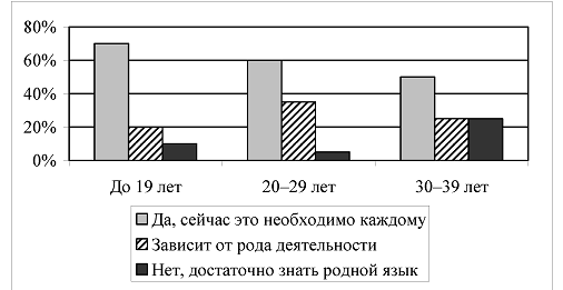 ?) Вопрос оказался сложным для четверти отвечавших. ?) Пятая часть опрошенных не видят изменений в достижении успеха. ?) Подавляющее большинство опрошенных не считают успех жизненной целью. ?) Респондентов, считающих, что сейчас легче добиться успеха, больше, чем тех, кто дал иной ответ. Вопрос id:416844 Тема/шкала: B10-Социальные отношения-Задание на обращение к социальным реалиям. Анализ диаграмм Европейский день языков, учреждённый Советом Европы, изучались мнения жителей одной из стран о том, необходимо ли современному человеку владение иностранными языками. Полученные данные (в % от числа опрошенных) представлены в графической форме.