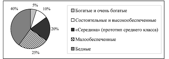 ?) Изучение иностранных языков становится всё более популярным занятием среди людей среднего возраста. ?) Зависимость изучения иностранных языков от рода деятельности наиболее выражена в ответах респондентов в возрасте до 19 лет. ?) Признание необходимости владения иностранными языками доминирует среди опрошенных всех возрастных групп. ?) Мнение «достаточно знать свой родной язык» свойственно преимущественно самым молодым из опрошенных. Вопрос id:416839 Тема/шкала: B10-Социальные отношения-Задание на обращение к социальным реалиям. Анализ диаграмм Проанализируйте данные диаграммы, свидетельствующие об экономической стратификации общества в стране Z.