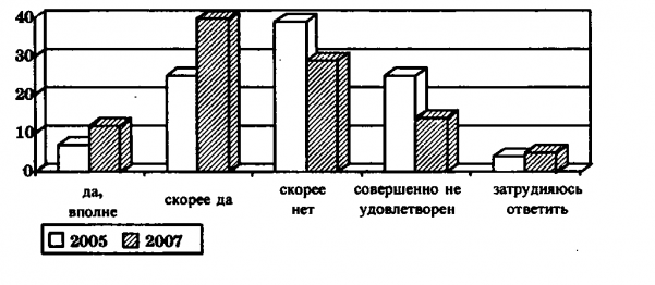 Вопрос id:416822 Тема/шкала: B10-Социальные отношения-Задание на обращение к социальным реалиям. Анализ диаграмм Ниже приведены данные опроса, проведенного Всероссийским центром изучения общественного мнения (ВЦИОМ). Респондентам был задан вопрос: «Удовлетворены ли вы качеством жилищно-коммунальных услуг?». Результаты опроса представлены в гистограмме.