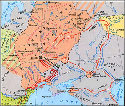 Вопрос id:433238 Тема/шкала: B30-Анализ исторических карт, схем-VIII - XVII века Напишите имя князя, погибшего в месте, обозначенном на схеме цифрой «3».