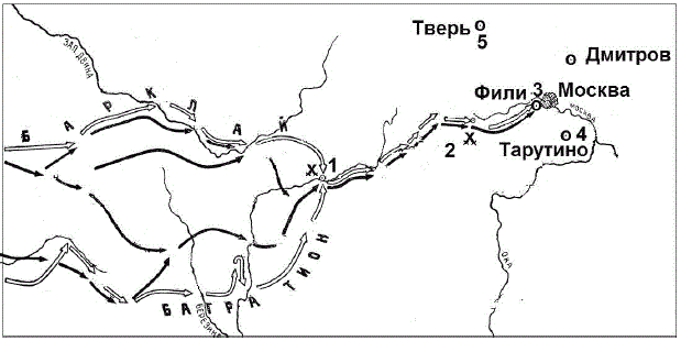 Вопрос id:433234 Тема/шкала: B30-Анализ исторических карт, схем-VIII - XVII века Напишите фамилию полководца, который возглавил русские войска вскоре после сражения, обозначенного на схеме цифрой «1».