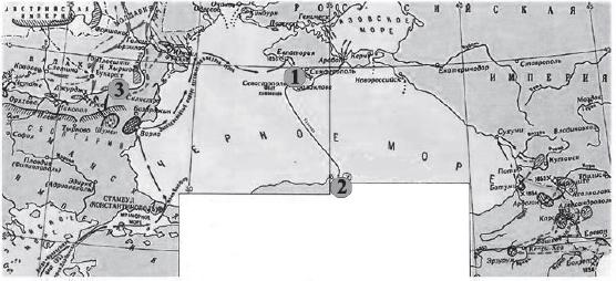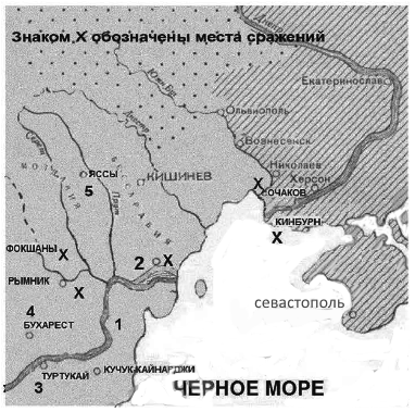 Напишите фамилию русского полководца, под командованием которого была взята штурмом хорошо укреплённая крепость, обозначенная на схеме цифрой «2». Вопрос id:433251 Тема/шкала: B30-Анализ исторических карт, схем-XVIII - XIX века Рассмотрите схему и выполните задания