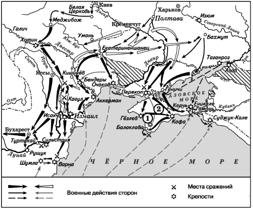 Напишите имя российского монарха, в годы правления которого шла война, события которой обозначены на данной схеме. Вопрос id:433255 Тема/шкала: B30-Анализ исторических карт, схем-XVIII - XIX века Рассмотрите схему и выполните задания