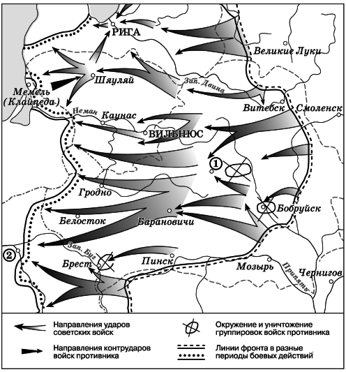 Вопрос id:433239 Тема/шкала: B30-Анализ исторических карт, схем-VIII - XVII века Укажите месяц, когда от фашистов был освобождён город, обозначенный на схеме цифрой «2».