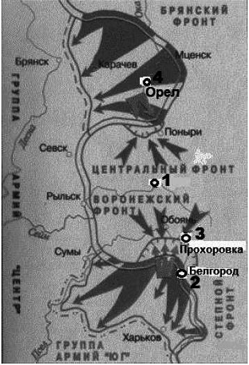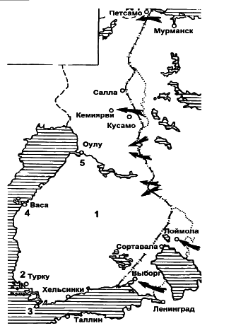 Укажите название города, обозначенного на схеме цифрой «1». Вопрос id:433267 Тема/шкала: B30-Анализ исторических карт, схем-XX век Рассмотрите схему событий одного из периодов Великой Отечественной войны и выполните задание
