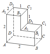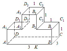 Найдите объем многогранника, изображенного на рисунке (все двугранные углы прямые).