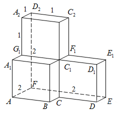 Найдите площадь поверхности многогранника, изображенного на рисунке (все двугранные углы прямые).