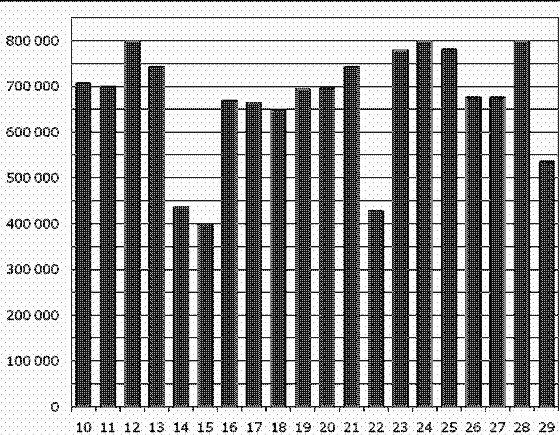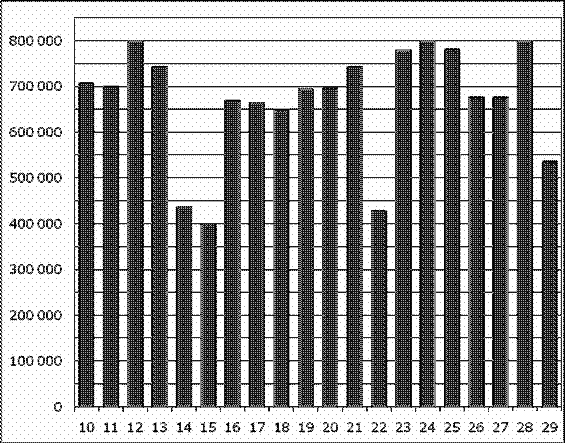 Вопрос id:434144 Тема/шкала: 02-Чтение графиков и диаграмм-Определение величины по диаграмме На диаграмме показано количество посетителей сайта РИА Новости во все дни с 10 по 29 ноября 2009 года. По горизонтали указываются дни месяца, по вертикали — количество посетителей сайта за данный день. Определите по диаграмме, сколько раз количество посетителей сайта РИА Новости принимало наибольшее значение.