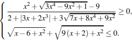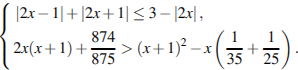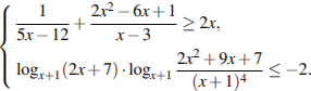 Вопрос id:463350 Тема/шкала: 15-Неравенства-Системы рациональных, иррациональных, показательных неравенств Решите систему неравенств Вопрос id:463351 Тема/шкала: 15-Неравенства-Системы рациональных, иррациональных, показательных неравенств Решите систему неравенств Вопрос id:463352 Тема/шкала: 15-Неравенства-Системы рациональных, иррациональных, показательных неравенств Решите систему неравенств Вопрос id:463353 Тема/шкала: 15-Неравенства-Системы рациональных, иррациональных, показательных неравенств Решите систему неравенств `{inv((1/(5 x - 12)+(2 x^2 - 6 x + 1)/(x - 3)≥ 2 x),(log_(x + 1) (2 x + 7)⋅(log_(x + 1) (2 x^2 + 9 x + 7))/(x + 1)^4 ≤ - 2)) ` |