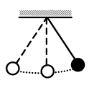 Математический маятник с периодом колебаний Т отклонили на небольшой угол от положения равновесия и отпустили c начальной скоростью равной нулю (см. рисунок). Через какое время после этого кинетическая энергия маятника во второй раз достигнет максимума? Сопротивлением воздуха пренебречь.