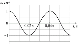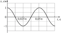 Маленький грузик массой 25 г, закреплённый на пружине, совершает гармонические колебания. График зависимости координаты x этого грузика от времени t изображён на рисунке. Жёсткость пружины равна