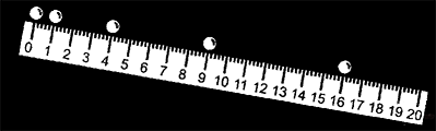 Вопрос id:436497 Тема/шкала: B6-Механика. Изменение физических величин в процессах На картинке приведена стробоскопическая фотография движе¬ния шарика по желобу. Промежутки времени между двумя последовательными вспышками света одинаковы. Числа на линейке обозначают длину в дециметрах. Как изменяются скорость шарика, его ускорение и сила тяжести, действующая на шарик? Начальную скорость шарика считать равной нулю.
