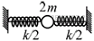 Вопрос id:436624 Тема/шкала: B7-Механика. Установление соответствия Шарик, надетый на гладкую горизонтальную спицу, прикреплён к концам двух невесомых пружин. Другие концы пружин прикреплены к неподвижным вертикальным стенкам так, что шарик может двигаться без трения вдоль горизонтальной спицы. В положении равновесия пружины не деформированы. В первом случае масса шарика m, жёсткость каждой пружины k ; во втором случае масса шарика 2m, жёсткость каждой пружины
