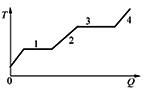 В цилиндре под поршнем находится твёрдое вещество. Цилиндр поместили в раскалённую печь. На рисунке показан график изменения температуры Т вещества по мере поглощения им количества теплоты Q. Какие участки графика соответствуют плавлению вещества и нагреванию вещества в газообразном состоянии? Установите соответствие между тепловыми процессами и участками графика.