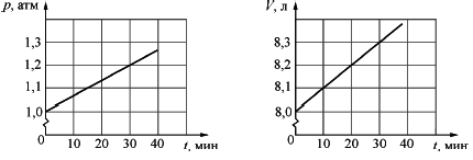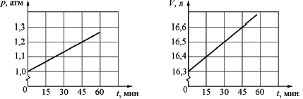?) 120 К ?) 60000 К ?) 1,2 К ?) 600 К Вопрос id:436719 Тема/шкала: B8-Молекулярно-кинетическая теория-Основное уравнение МКТ На графиках приведены зависимости давления p и объёма V от времени t для 0,4 молей идеального газа. Чему равна температура газа в момент t = 45 минут?