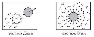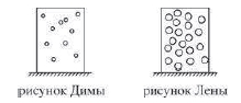 Отвечающим модели идеального газа можно признать рисунок, сделанный А) Димой Б) Леной