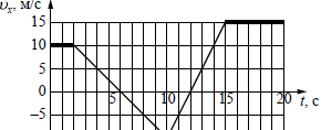 ?) от 30 до 50 с ?) от 50 до 70 с ?) от 10 до 30 с ?) от 0 до 10 с Вопрос id:435928 Тема/шкала: B1-Кинематика-Анализ графиков На рисунке приведён график зависимости проекции скорости тела vx от времени.