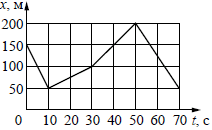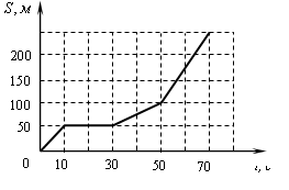 ?) от 0 до 10 с ?) от 10 до 30 с ?) от 30 до 50 с ?) от 50 до 70 с Вопрос id:435927 Тема/шкала: B1-Кинематика-Анализ графиков