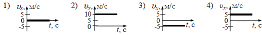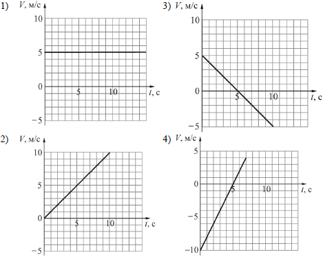 ?) 20 км/ч ?) -20 км/ч ?) 50 км/ч ?) 120 км/ч Вопрос id:435958 Тема/шкала: B1-Кинематика-Скорость тела Координата тела, движущегося вдоль оси Оx, изменяется по закону x(t) = 10 − 5t, где все величины выражены в СИ. Какой из приведенных ниже графиков совпадает с графиком зависимости проекции скорости этого тела от времени?