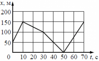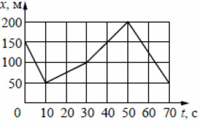 ?) от 50 до 70 с ?) от 10 до 30 с ?) от 0 до 10 с ?) от 30 до 50 с Вопрос id:435925 Тема/шкала: B1-Кинематика-Анализ графиков