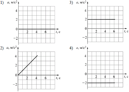 Вопрос id:435973 Тема/шкала: B1-Кинематика-Ускорение тела Точечное тело движется вдоль оси OX. Зависимость координаты x этого тела от времени t имеет вид: x(t) = (5 − t)2. На каком из приведённых ниже рисунков правильно изображена зависимость проекции a ускорения этого тела на ось OX от времени?