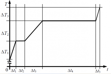 ?) ?) ?) ?) Вопрос id:436839 Тема/шкала: B8-Молекулярно-кинетическая теория-Фазовые переходы, равновесие фаз На рисунке представлен график зависимости температуры Т воды массой m от времени t при осуществлении теплопередачи с постоянной мощностью Р.