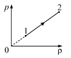 При переходе идеального газа из состояния 1 в состояние 2 давление газа пропорционально его плотности. Масса газа в процессе остаётся постоянной. Утверждается, что в этом процессе