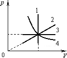 ?) 4 ?) 3 ?) 2 ?) 1 Вопрос id:436899 Тема/шкала: B9-Изопроцессы, работа в термодинамике, первый закон термодинамики-Изотермический, изохорический, изобарический, адиабатический процессы, На рисунке показаны графики четырех процессов изменения состояния идеального газа.