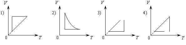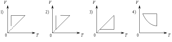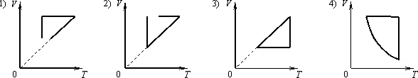 ?) 4 ?) 1 ?) 3 ?) 2 Вопрос id:436903 Тема/шкала: B9-Изопроцессы, работа в термодинамике, первый закон термодинамики-Изотермический, изохорический, изобарический, адиабатический процессы, На V—T диаграмме представлена зависимость объема идеального газа постоянной массы от абсолютной температуры.