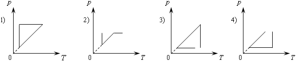 ?) 3 ?) 2 ?) 1 ?) 4 Вопрос id:436887 Тема/шкала: B9-Изопроцессы, работа в термодинамике, первый закон термодинамики-Изотермический, изохорический, изобарический, адиабатический процессы, Идеальный газ нагревался при постоянном давлении, потом его давление увеличивалось при постоянном объеме, затем при постоянной температуре давление газа уменьшилось до первоначального значения. Этим изменениям состояния газа соответствует график на рисунке