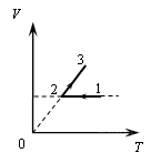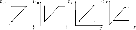 ?) весь отрезок 1—2 ?) точка 1 ?) весь отрезок 2—3 ?) точка 3 Вопрос id:436902 Тема/шкала: B9-Изопроцессы, работа в термодинамике, первый закон термодинамики-Изотермический, изохорический, изобарический, адиабатический процессы, Один моль идеального газа сначала сжимается при постоянной температуре, затем нагревается при постоянном давлении и, наконец, охлаждается при постоянном объеме до первоначальной температуры. Какой из графиков в координатах p—T соответствует этим изменениям?