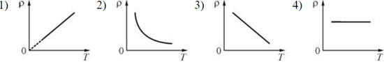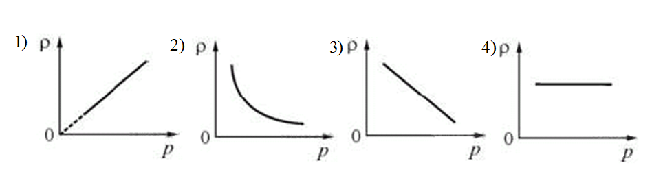 ?) 1 ?) 3 ?) 4 ?) 2 Вопрос id:436919 Тема/шкала: B9-Изопроцессы, работа в термодинамике, первый закон термодинамики-Изотермический, изохорический, изобарический, адиабатический процессы, Давление газа изменяют изотермически. Зависимость плотности этого газа от давления правильно изображена на рисунке