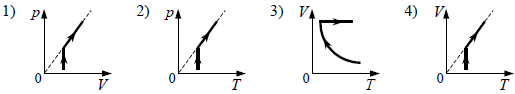 ?) 3 ?) 1 ?) 4 ?) 2 Вопрос id:436895 Тема/шкала: B9-Изопроцессы, работа в термодинамике, первый закон термодинамики-Изотермический, изохорический, изобарический, адиабатический процессы, На рисунке представлены графики процессов, проводимых с постоянным количеством идеального газа.