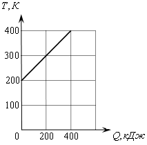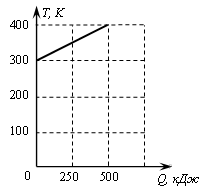 На рисунке изображён график зависимости температуры тела от подводимого к нему количества теплоты. Удельная теплоёмкость вещества этого тела равна 500 Дж/(кг