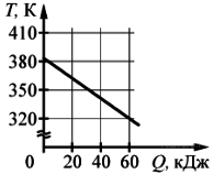 Твёрдое тело остывает. На рисунке представлен график зависимости температуры тела от отданного им количества теплоты. Удельная теплоёмкость тела 500 Дж/(кг