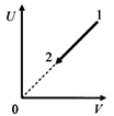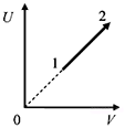 На рисунке показан процесс изменения состояния одного моля одноатомного идеального газа (U — внутренняя энергия газа; V — занимаемый им объём). Как изменяются в ходе этого процесса давление, абсолютная температура и теплоёмкость газа?