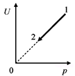На рисунке показан процесс изменения состояния одного моля одноатомного идеального газа (U — внутренняя энергия газа; p — его давление). Как изменяются в ходе этого процесса объём, абсолютная температура и теплоёмкость газа? Для каждой величины определите соответствующий характер изменения: