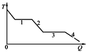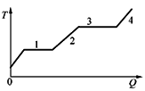 На рисунке показан график изменения температуры T вещества при постоянном давлении по мере выделения им количества теплоты Q. В начальный момент времени вещество находилось в газообразном состоянии. Какие участки графика соответствуют кристаллизации вещества и остыванию жидкости? Установите соответствие между тепловыми процессами и участками графика.