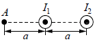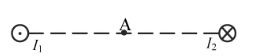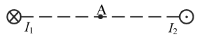Два параллельных длинных проводника с токами I1 и I2 расположены перпендикулярно плоскости чертежа (см. рисунок). Векторы