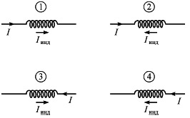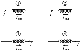 ?) на 1 и 4 ?) только на 2 ?) только на 1 ?) на 2 и 3 Вопрос id:437230 Тема/шкала: B13-Электризация. Электромагнитная индукция. Интерференция, дифракция и дисперсия-Электромагнитная индукция Сила тока I, текущего через катушку, убывает. На каком рисунке правильно показано направление протекания индукционного тока Iинд (по отношению к току I) в этой катушке?